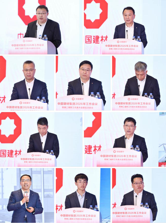 1月9日,中国建材集团2026年工作会议暨第二届职工代表大会第五次会议在北京召开。审计署企业审计八局、国务院国资委资本局有关领导出席会议。会议传达学习了习近平总书记对中央企业工作的重要指示,强调要把学习宣传贯彻习近平总书记重要指示精神作为重大政治任务,牢记嘱托勇担使命,不断增强核心功能、提升核心竞争力,以高质量发展为中国式现代化建设贡献更大力量。会议以习近平新时代中国特色社会主义思想为指导,全面贯彻党的二十大和二十届历次全会精神,深入落实中央经济工作会议精神、中央企业负责人会议部署要求,系统总结2025年及“十四五”工作成绩,研究提出“十五五”工作思路,部署2026年重点工作。集团党委书记、董事长周育先作了题为《筑基“十四五” 奋进“十五五” 加快开启新一轮高质量增长期》的讲话,集团党委副书记、总经理常张利主持会议并作了题为《提质增效稳增长 创新转型强动能 全力开启“十五五”高质量发展新篇章》的工作报告。集团外部董事程念高、王来祥、曹光祥、夏策明,集团领导班子成员王于猛、魏如山、刘磊、邓长清,中国工程院院士、集团首席科学家彭寿出席会议。